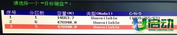 8、再次进入硬盘窗口,选择“目标硬盘”,按回车确定(源硬盘和目标硬盘不能一样)。如图: