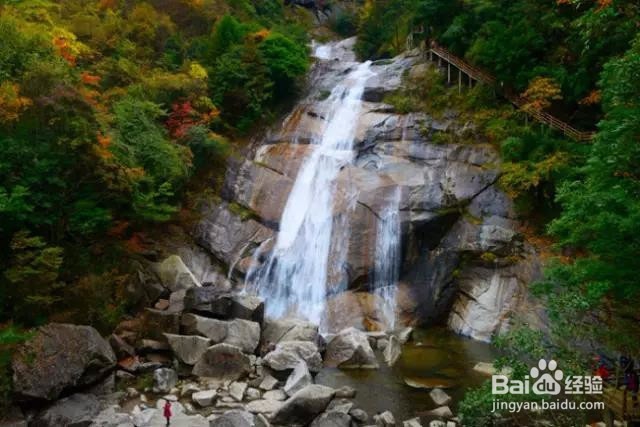 3、鲤鱼瀑:沿山边步道继续走上200多米,一个鲤鱼瀑开阔壮观的放在我们面前,鲤鱼瀑不高,但非常秀美,有潭有水,有石有树。潭树倒影,相映成趣,中间几块不规则的石头摆成步道,方便游客跨越对岸。