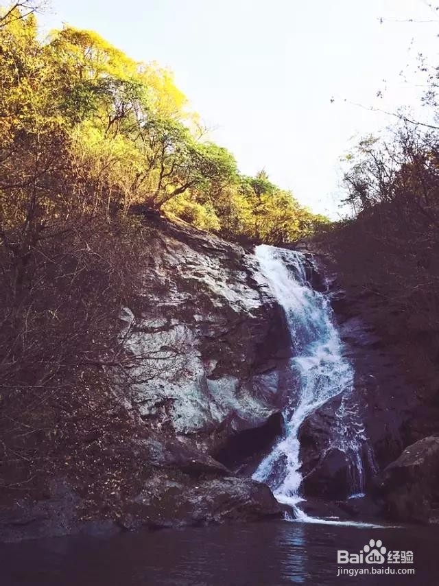 2、通天大峡谷:一路沿河道前行,闯入我们眼前的是两岸高近百米的大峡谷,峡谷峭壁悬崖,呈90度垂直。这就是通天大峡谷,悬崖上奇松古藤、冬木黄叶比比皆是,前面一条玉带瀑轻盈流淌,原先一个青龙潭早已被河沙淤积,但这里美丽的红叶依然值得游客们去追溯。峡谷全长3公里,小路顺河谷两边交错迂回,河谷两岸古木成林,林间野茶飘香,不知名的野花野草随处可见,河谷中巨石横亘,潭水幽深,走在林中,看在水中,步换景移,目不暇接。