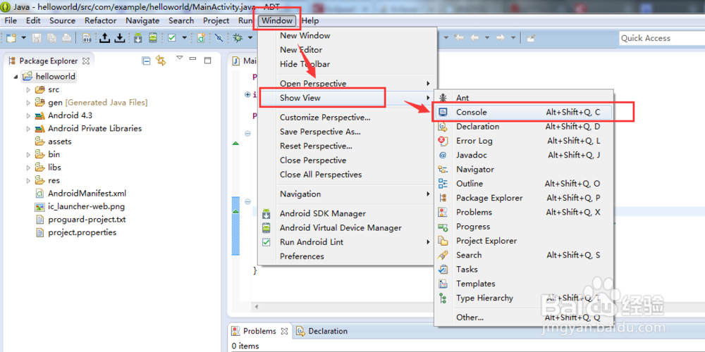 3、找到他下面的“show view”,点击console,点击打开,如图: