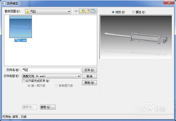 2、单击“视图向导”,打开要出工程图的模型,如下图所示: