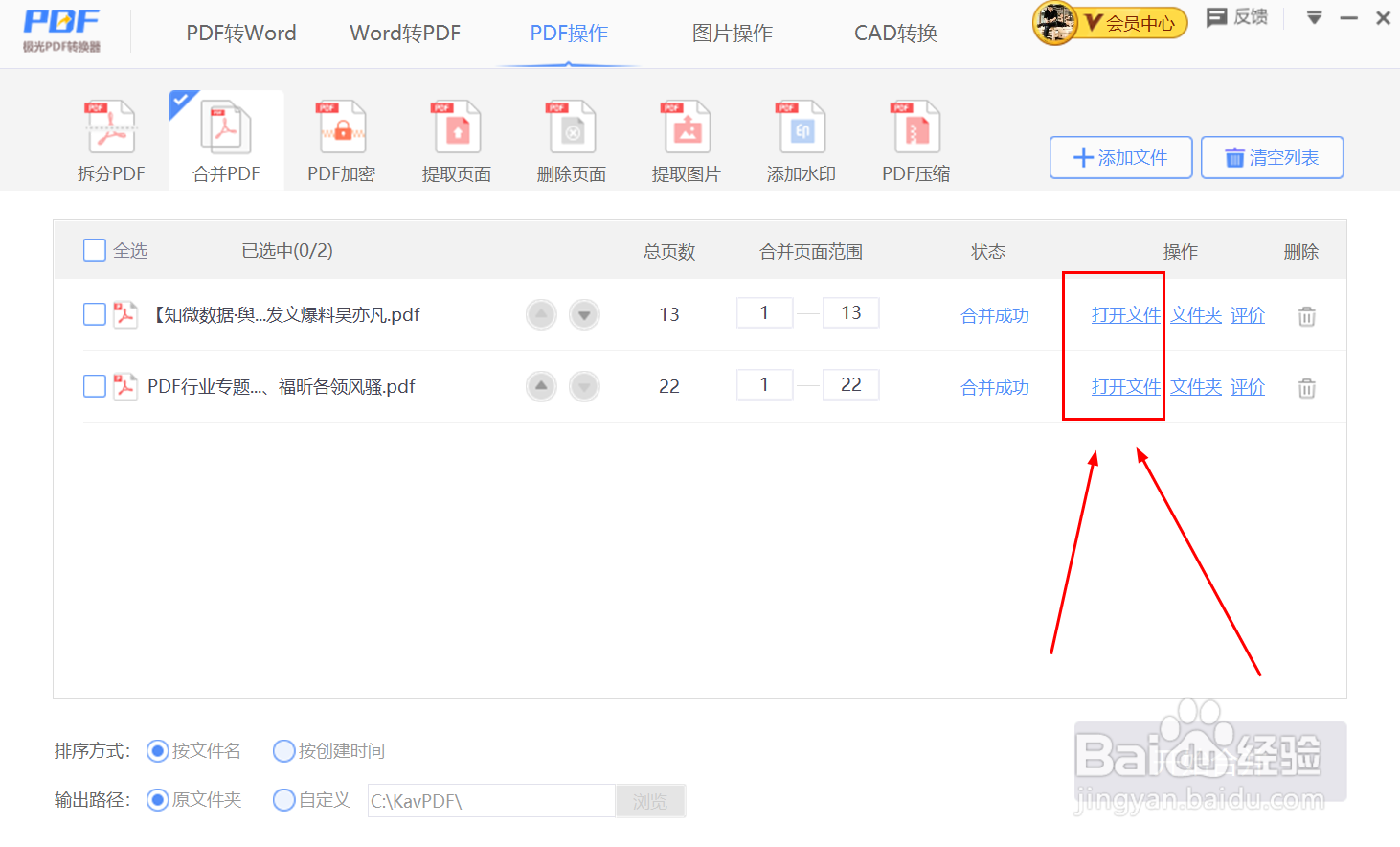 4、PDF合并成功后,点击【打开文件】,直接打开多个PDF合并成功的单个PDF文件;