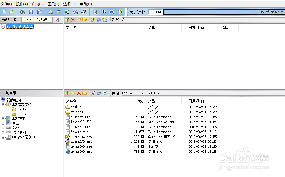 3、接下来,是要制作U盘的启动盘。制作的软件工具有很多,常见的如UltraISO软碟通、老毛桃等。此处以UltraISO为例。