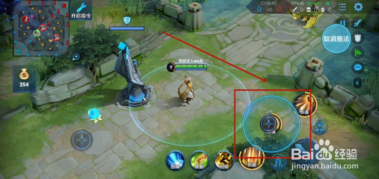 5、点击“跟随手指”,此时英雄技能释放时技能轮盘中心点为手指按下时位置。