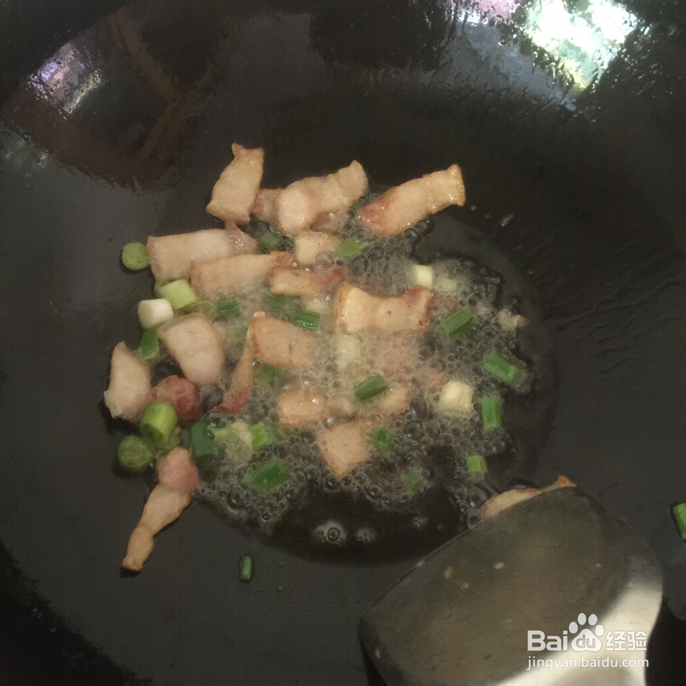 5、当洋葱有香味时,拿出一些油,待会儿再用