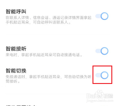 5、在智能通话界面,将智能切换开关打开即可。