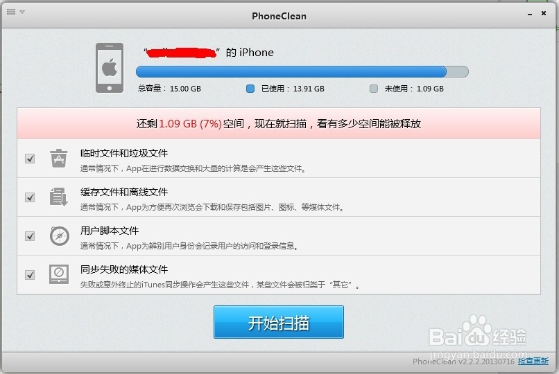 所以当设备中的音频、视频软件中有文件时,注意一定要将相应软件前面的勾去掉。如果您确定不再需要这些文件,则不用去掉。