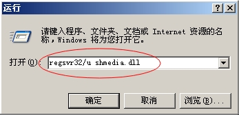 恢复的方法也很简单,只要输入“regsvr32 shmedia.dll”即可!