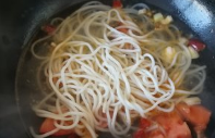 6、千张丝,金针菇,上海青放入煮两滚儿。