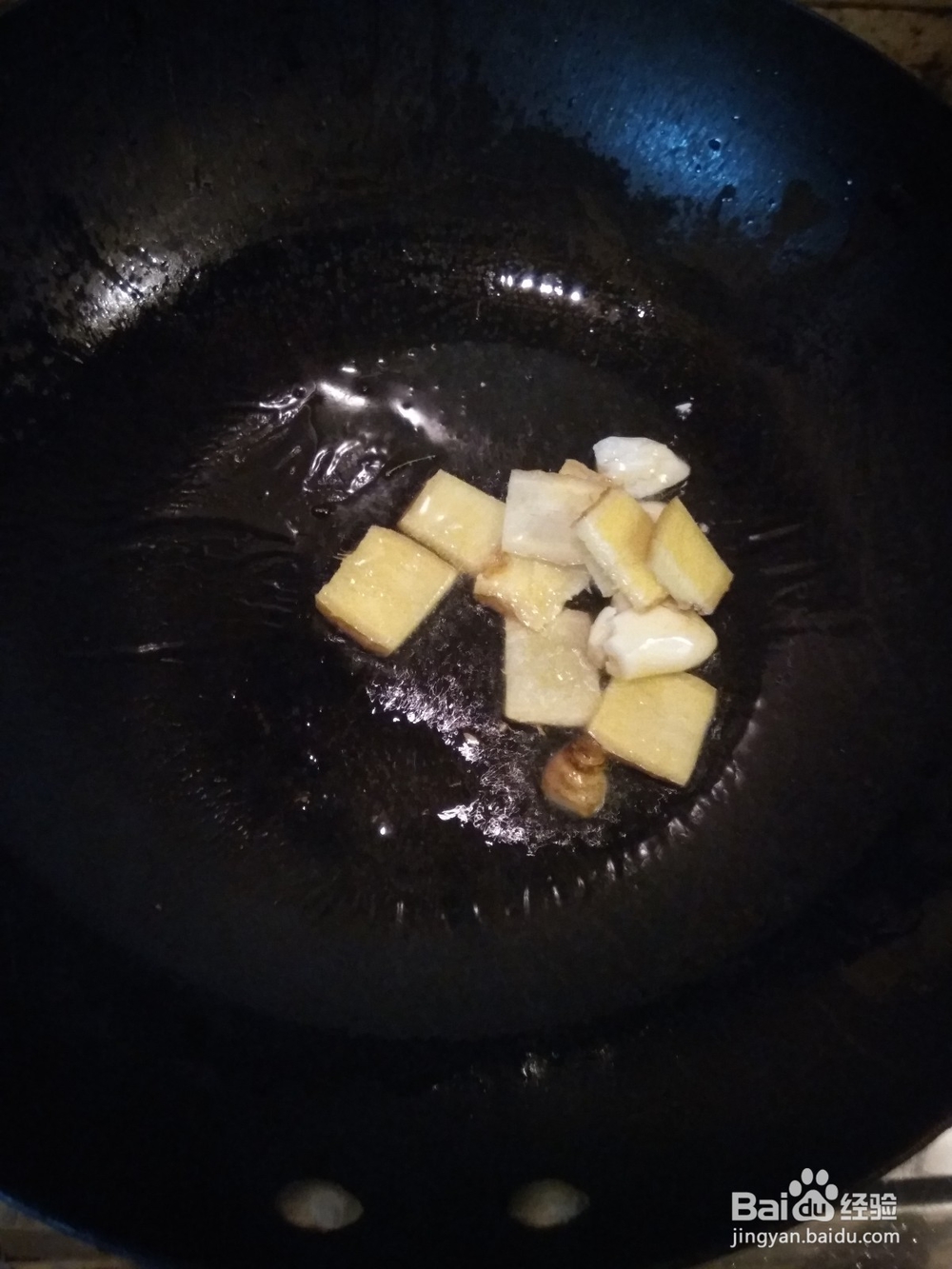 4、锅内入少许油,放入姜片和大蒜翻炒爆香