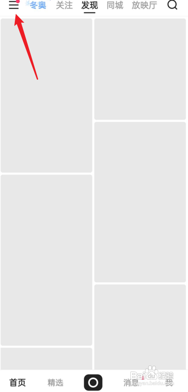 1、点击三个横线打开快手APP,点击左上角的三个横线。
