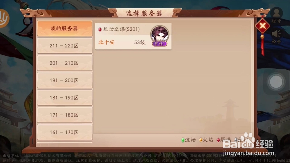 2、然后选择你的区服。