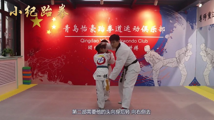 1、旋转后的静态练习方法:两人面对面。一人练习,一人辅助。
