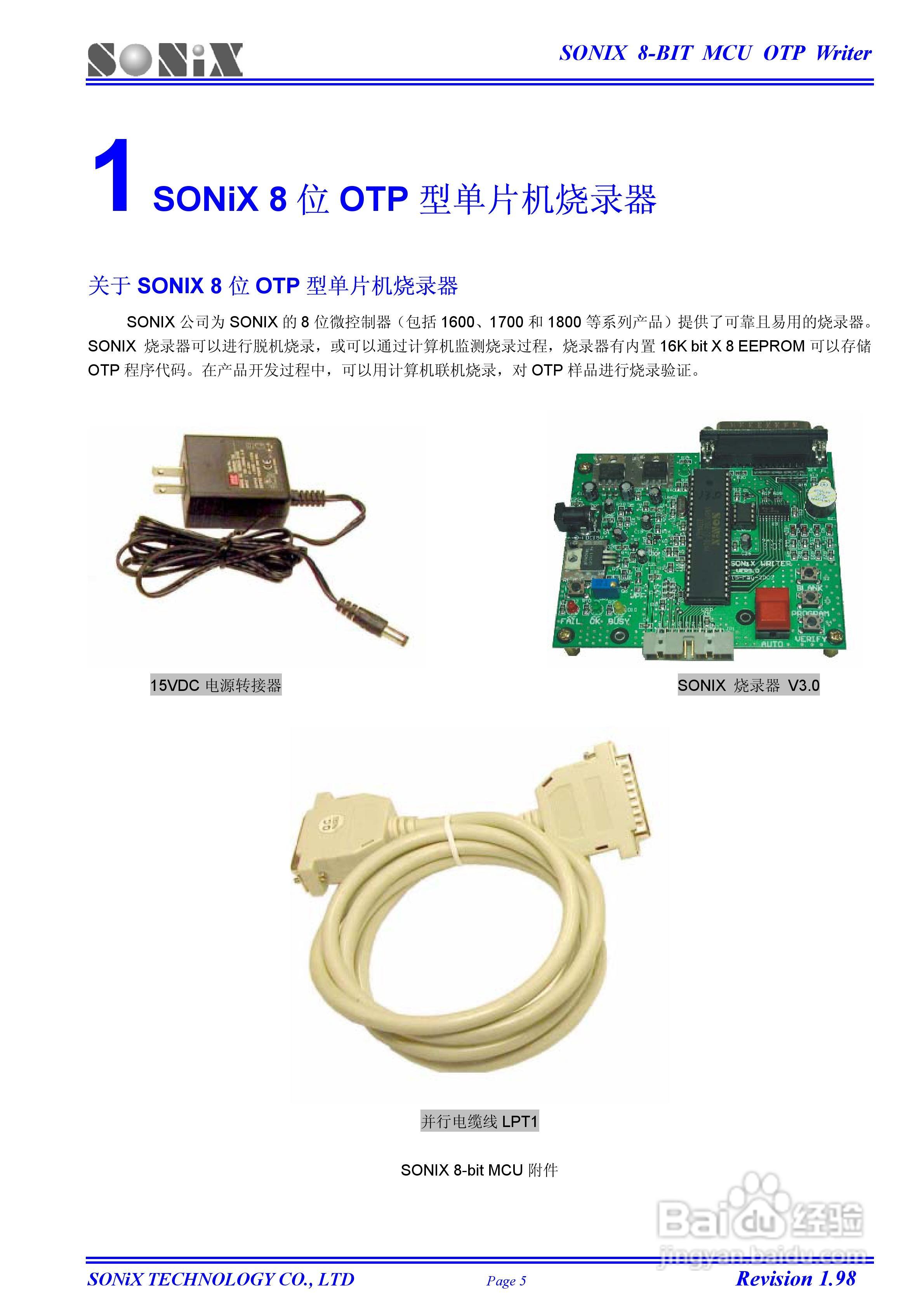 本篇为《SONIX 8位OTP型单片机烧录器操作说明书》,主要介绍该产品的使用方法以及常见故障解决方案。