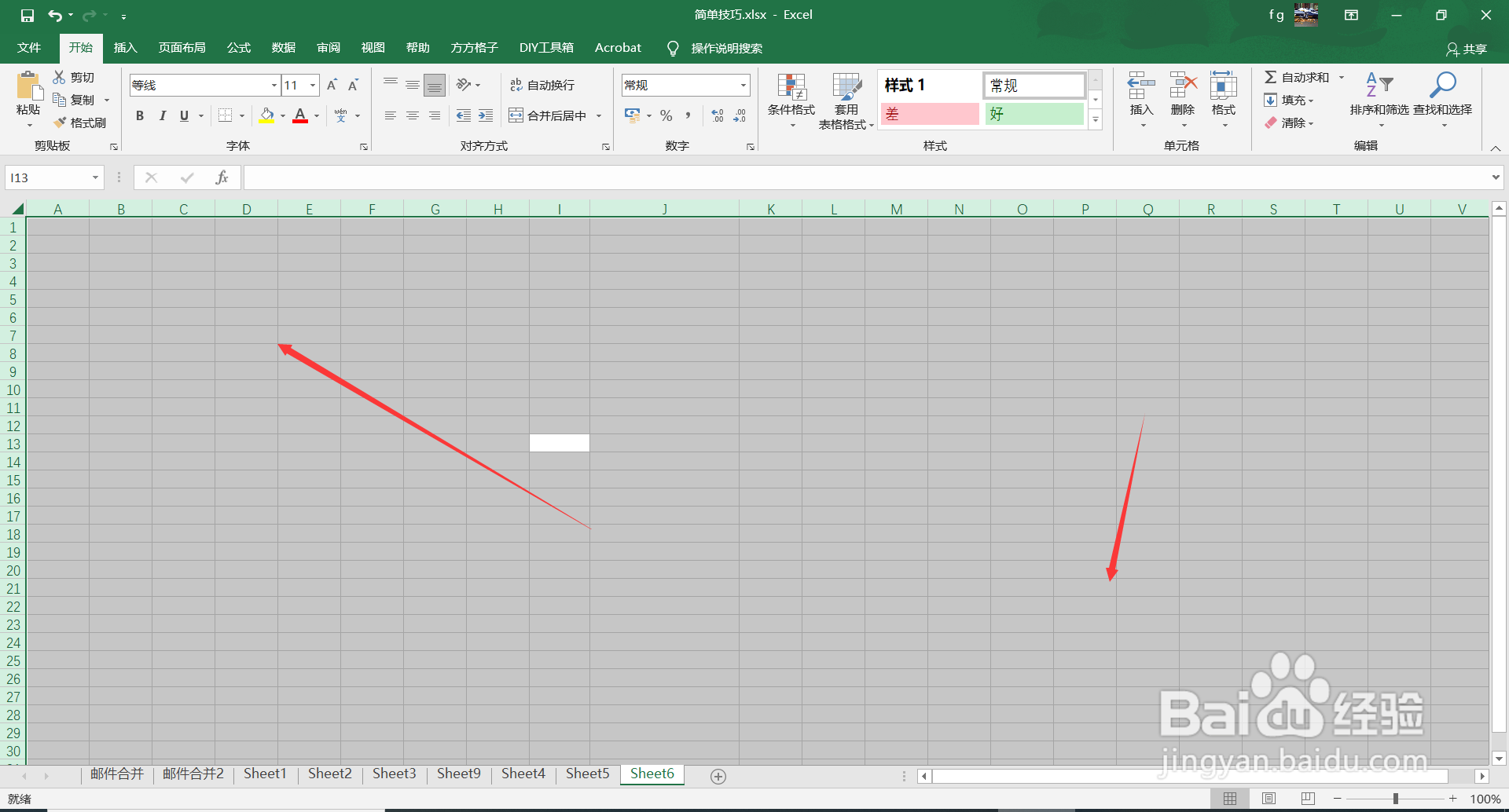 5、Ctrl + Home :快速回到第一行的第一个单元格A1。