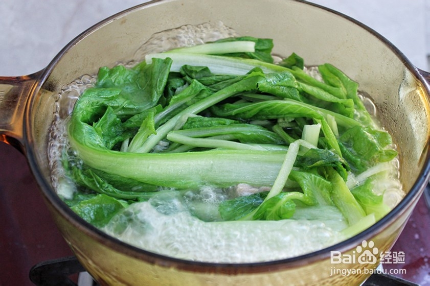 2、小白菜用淡盐水浸泡十分钟,洗净备用