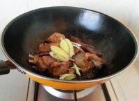 5、热锅下油,小火下冰糖炒出糖色,下羊排翻炒
