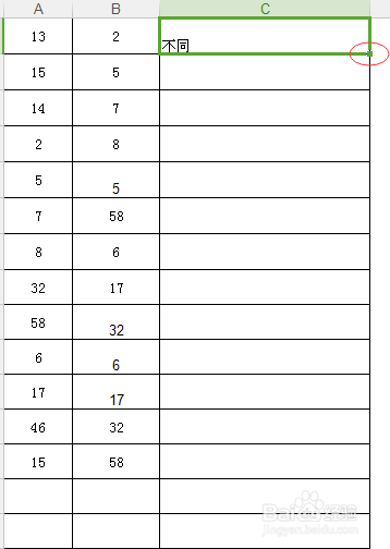 C1单元格中插入函数=IF(A:A=B:B,“相同”,“不同”)