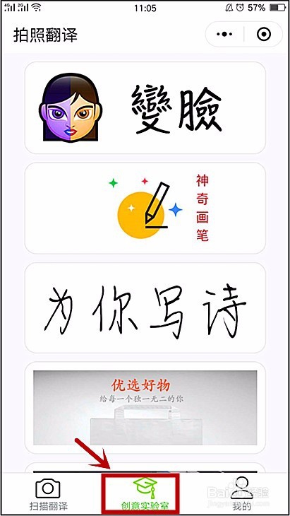7、智能实验室非常有趣,里面有变脸、神奇画笔、为你写诗、表格文字识别等内容,有兴趣的可以点击“创意实验室”,操作非常简单。这个小程序唯一的缺点是,图片翻译不全,多少有丢字落字的现象,总体上还是不错的,提供大家仅供参考。