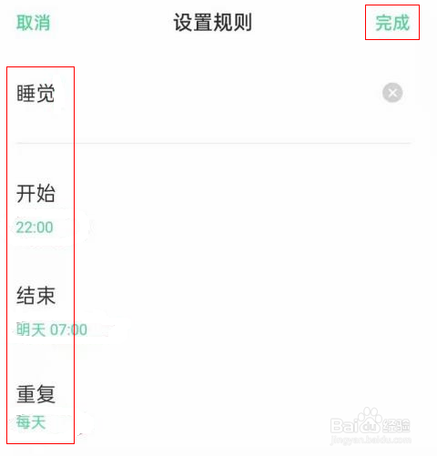 4、进入设置规则界面,输入好规则名称、开始、结束时间,点击完成即可。