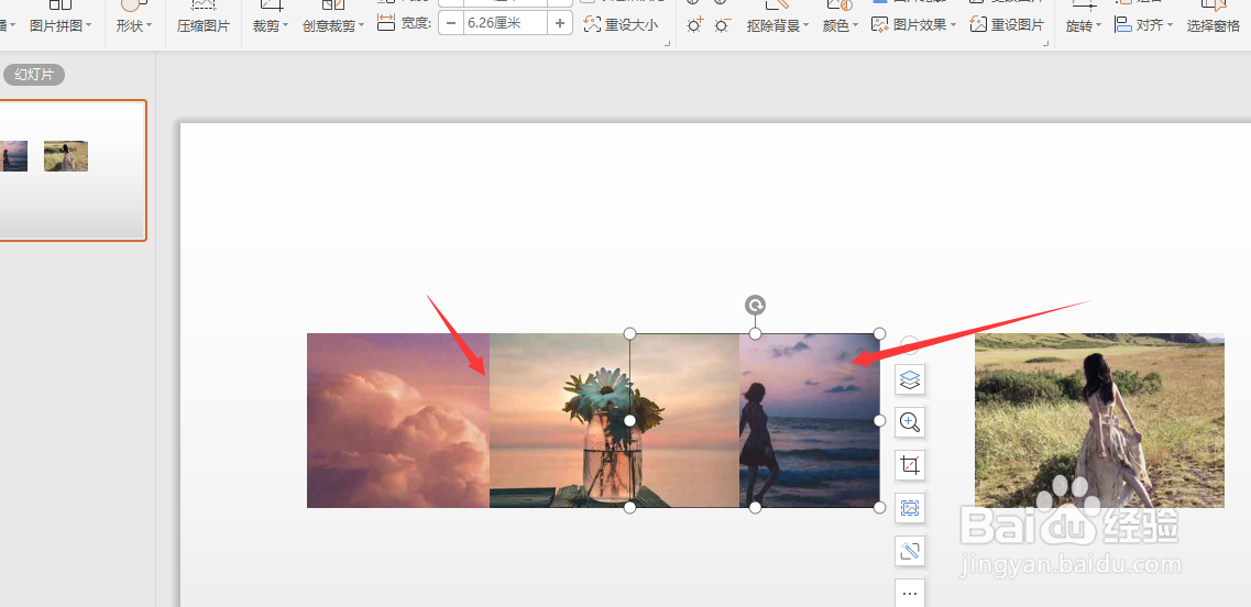 7、想要在垂直分布时,需要先确定上方第一张图片以及底部图片位置,然后点击纵向分布既可。