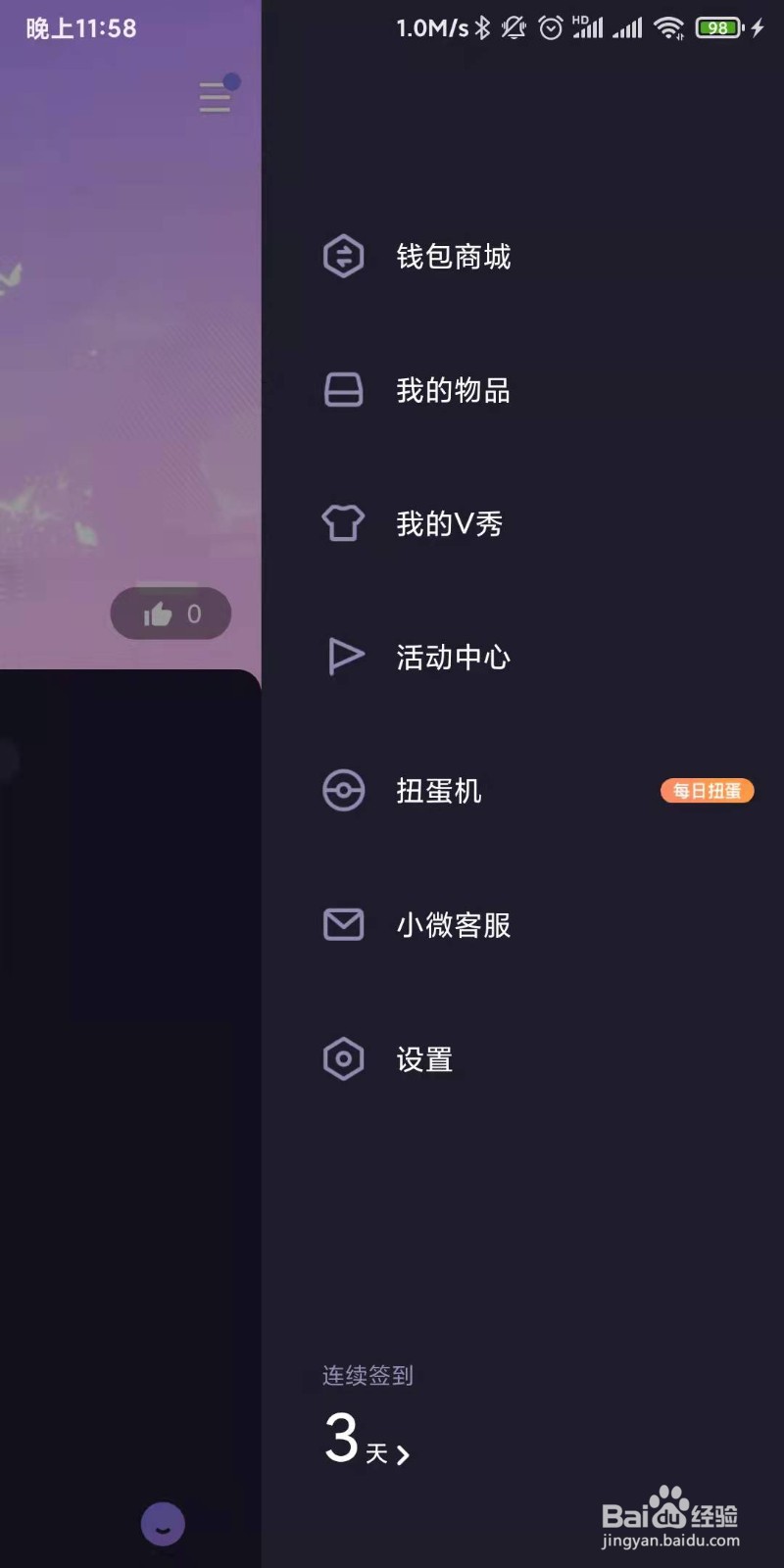 1、在为微光APP最右侧界面,点击右上角菜单图标,在弹出右侧菜单栏中找到设置选项,点击进入设置界面。