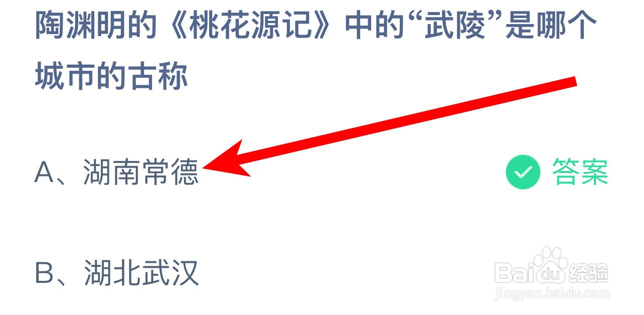 1、2024年6月19日蚂蚁庄园今日问题:陶渊明的《桃花源记》中的“武陵”是哪个城市的古称?