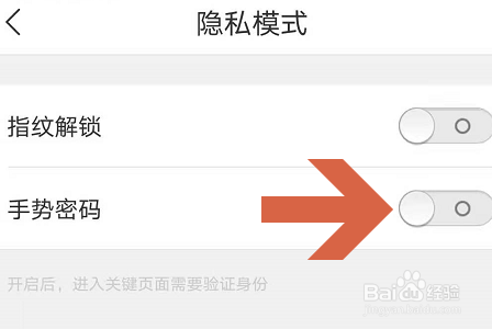 4、隐私模式中就包含有手势密码选项,只不过默认状态下处于未开启状态;