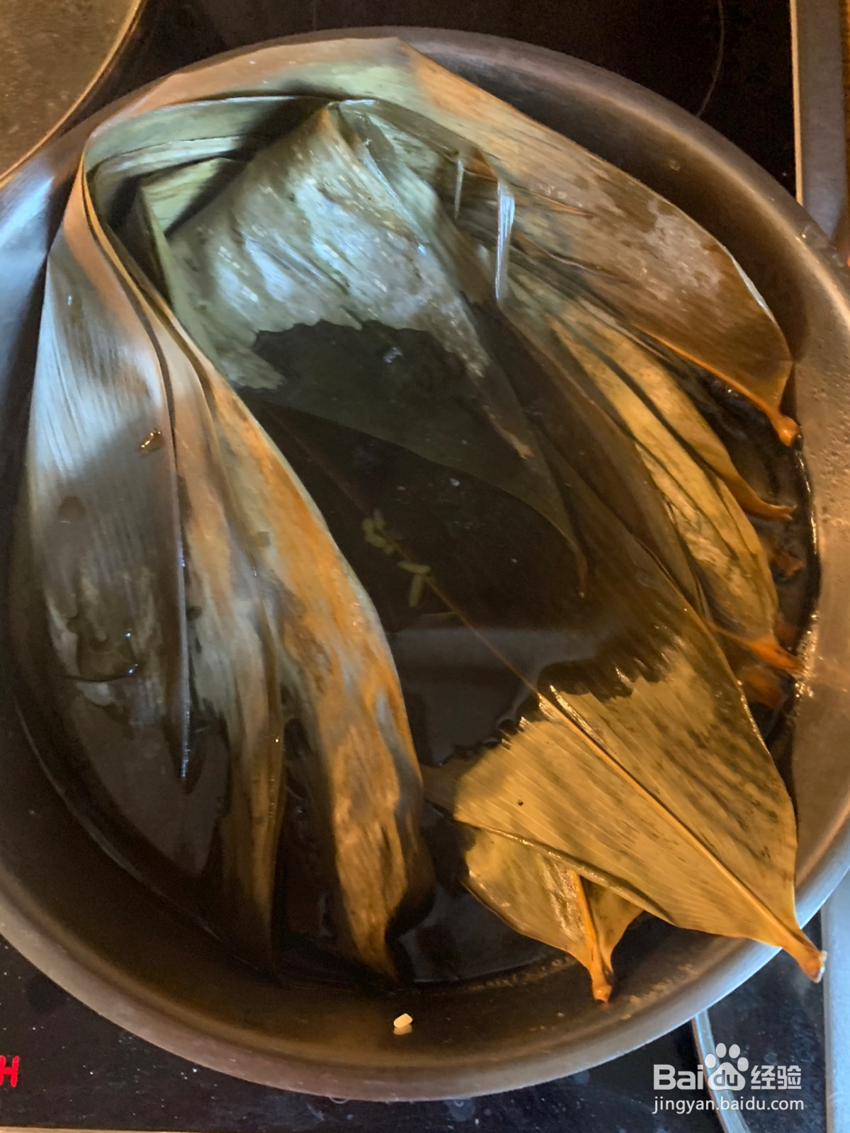 3、准备粽子叶,开水煮沸浸泡半小时以后。