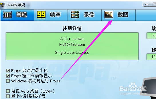 2、fraps是专门录制游戏用的,但是它也可以截取游戏中的画面。