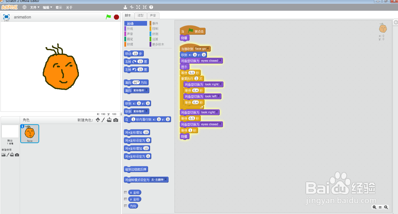 6、点击绿旗执行程序,变脸动画就制作好了;