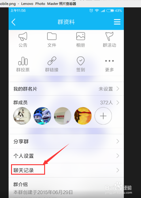 5、QQ软件着重清理。如果需要个别删除,就点击需要删除的聊天,点击右上角的小人标志,点击“聊天记录”,点击“删除”,就可以完成清理。