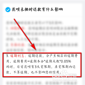 4、若我们的花呗逾期没有还,那么就可能会对咱们后期花呗的使用以及个人的信用记录都产生影响。逾期的还款,会收取对应的利息。