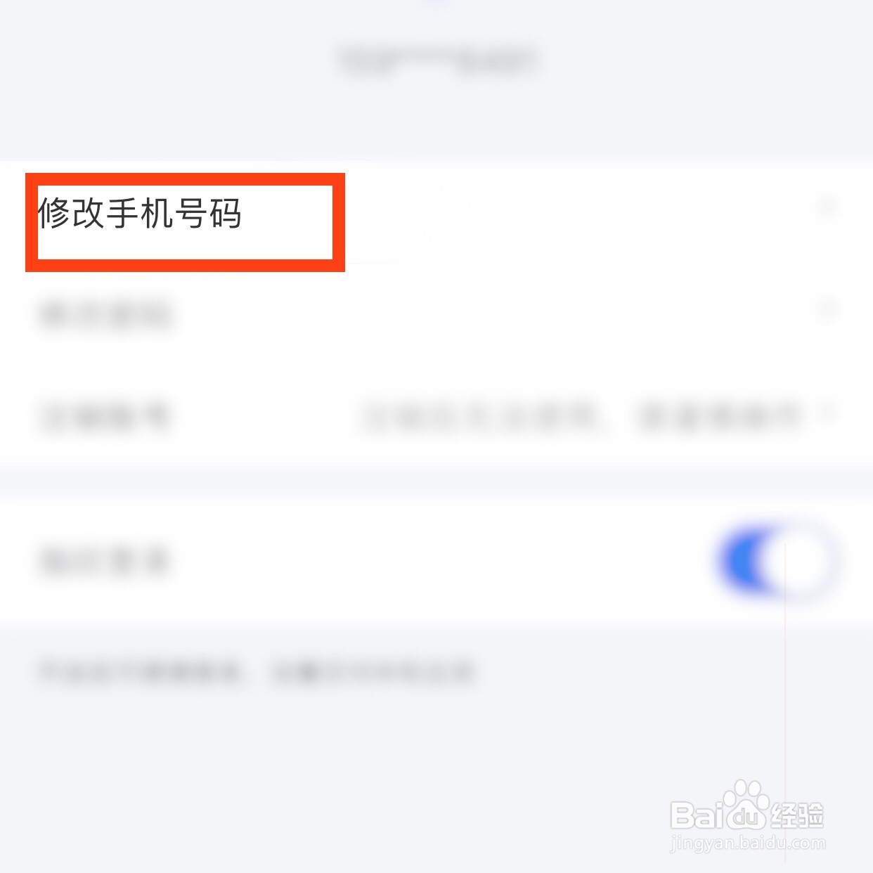 3、3。选择修改手机号码选项。