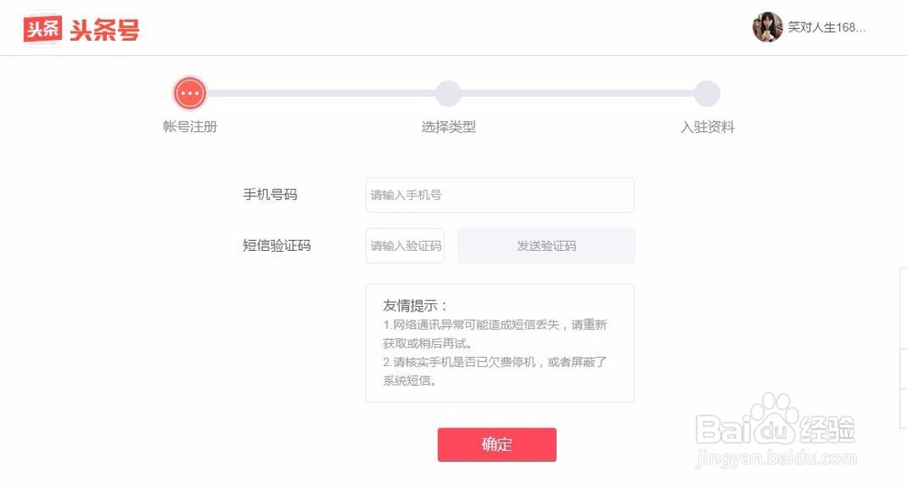 4、注册头条账号:进入头条号登录页面之后,第一次登录的需要注册账号,在这个页面可以看到注册入口,点击注册,进入注册页面!