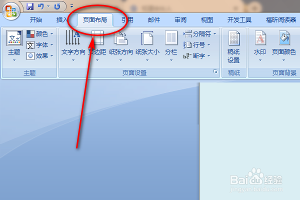 3、在word文档的任务栏中选择页面布局选项,点击打开页面布局功能界面。