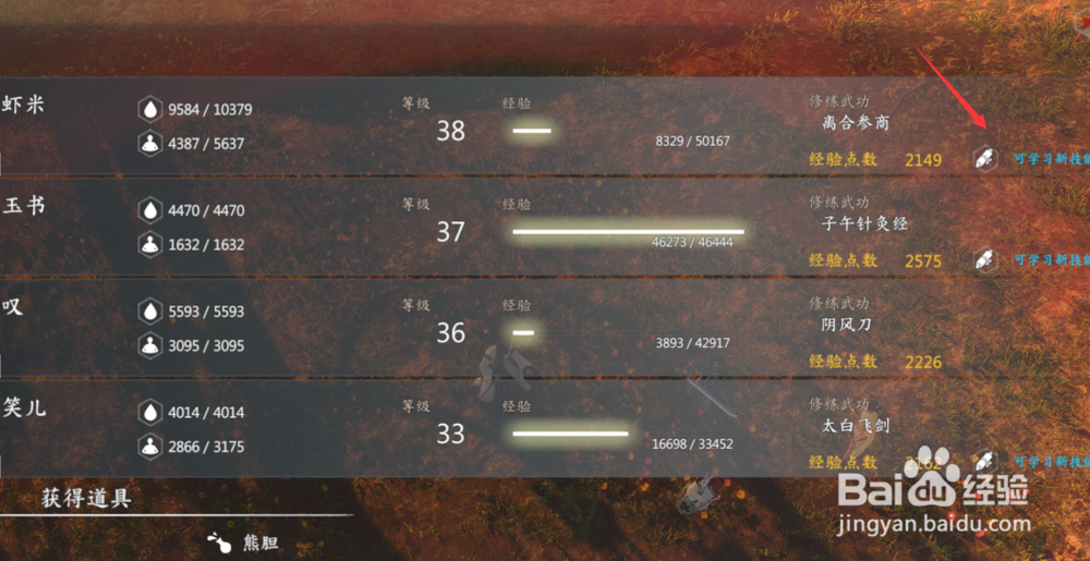 6、然后只要经验达到要求,就能把参商离合学上了,这本内功还是有点用的,可以增加反击的伤害。