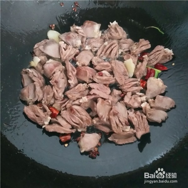 11、调入辣椒油和黑胡椒粉,翻炒均匀。