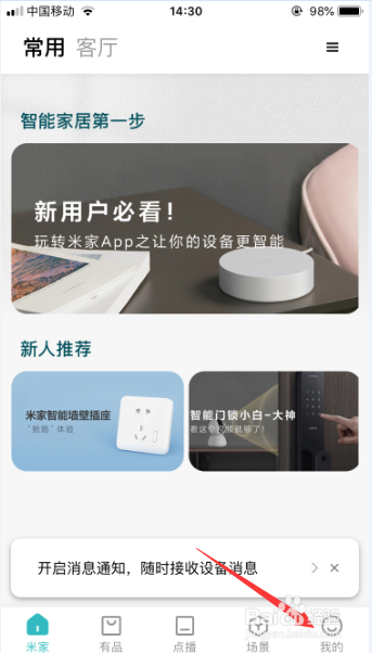 2、进入到了米家app的界面中,点击右下角中的 我的 选项