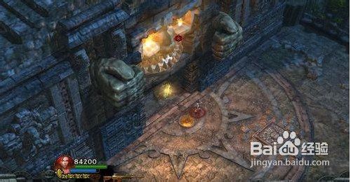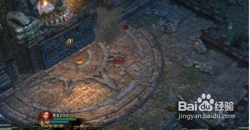 3、这时玩家再去拿上面那个,一路上将敌人解决,进入神庙。先跳上去,再把大球推下去,把球推到机关前,阻挡暗箭射出,这时再去拉机关正对面的把手,把机关吊起来。