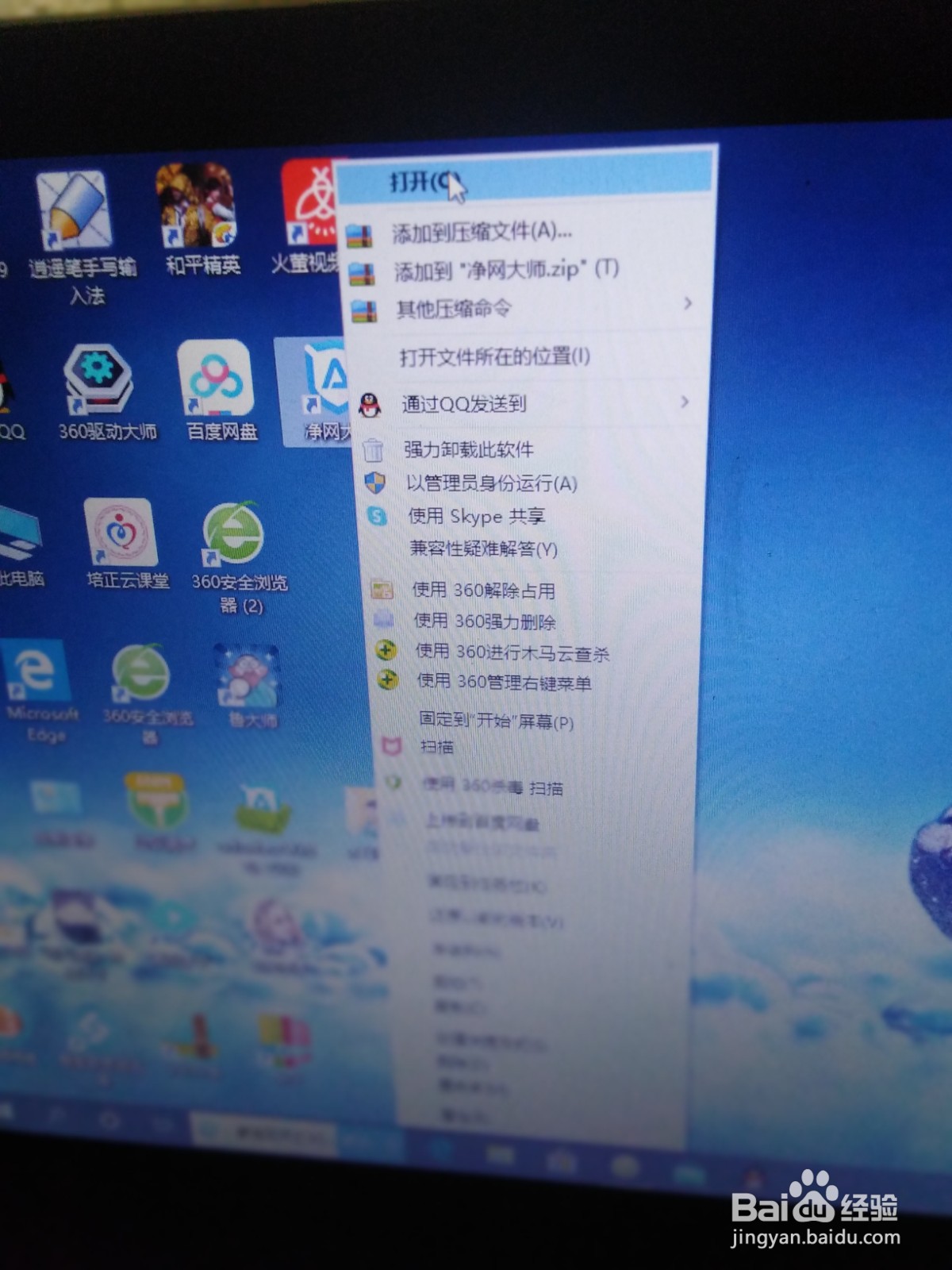 1、在电脑上面下载一个叫净网大师的软件并安装好,点击这个净网大师打开软件。