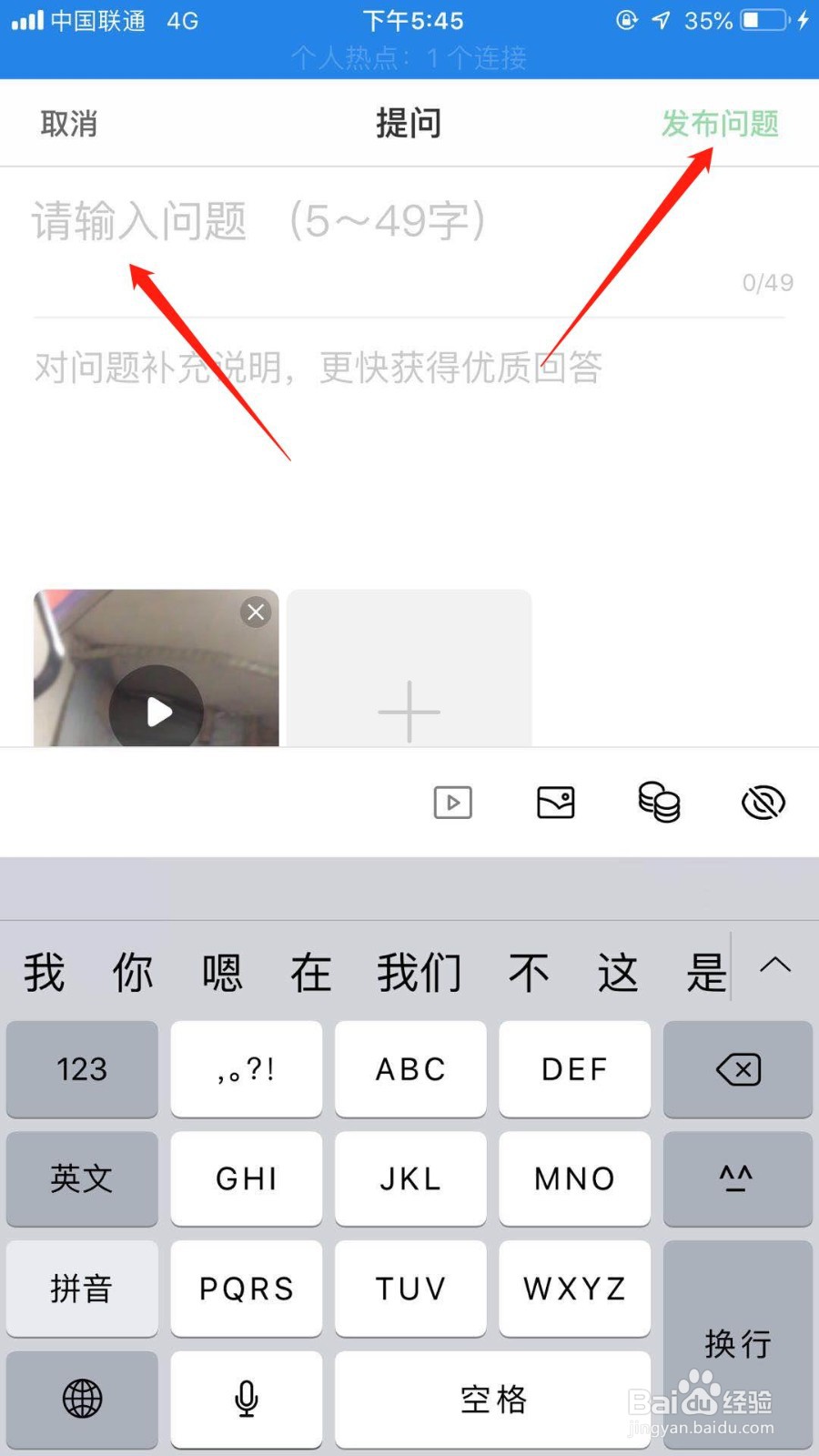 3、然后点击底部的拍摄按钮,开始提问,拍好之后,选择右下角的对勾,也可以点击【+】,选择已拍好提问视频。