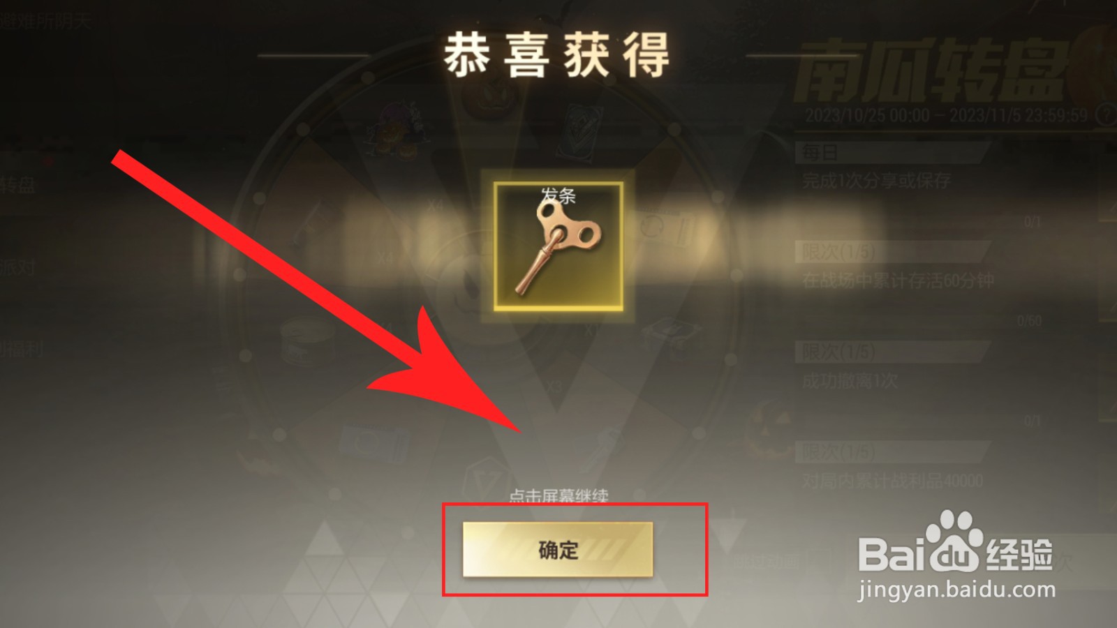 2、然后在弹出的面板上方点击“确定”获得发条道具即可。