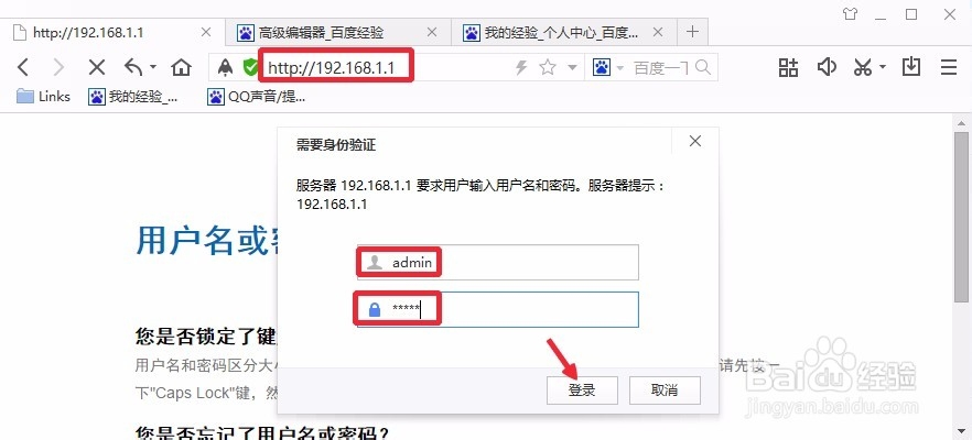 1、这里我们打开电脑浏览器登陆路由器管理界面,路由器的背面可以查看默认的登陆账号。通常默认的登陆地址是192168.1.1,登陆的用户名密码是admin。当然我们也可以对这个默认的登陆地址和用户名密码进行修改。