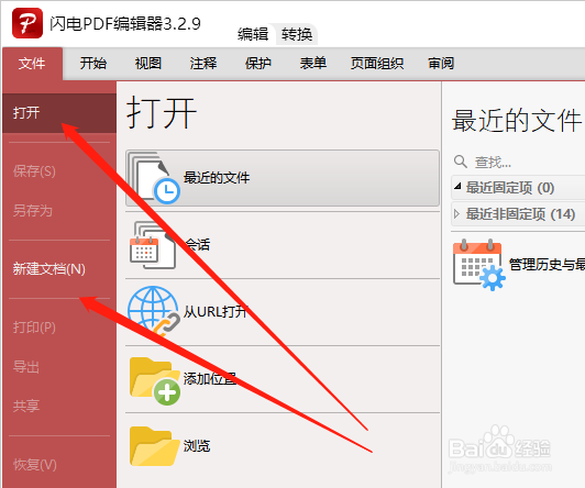 1、打开软件后,可选择打开或者新建一个pdf文件