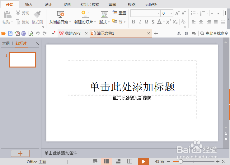 1、打开WPS演示这款软件,进入WPS演示的擦界面,如图所示: