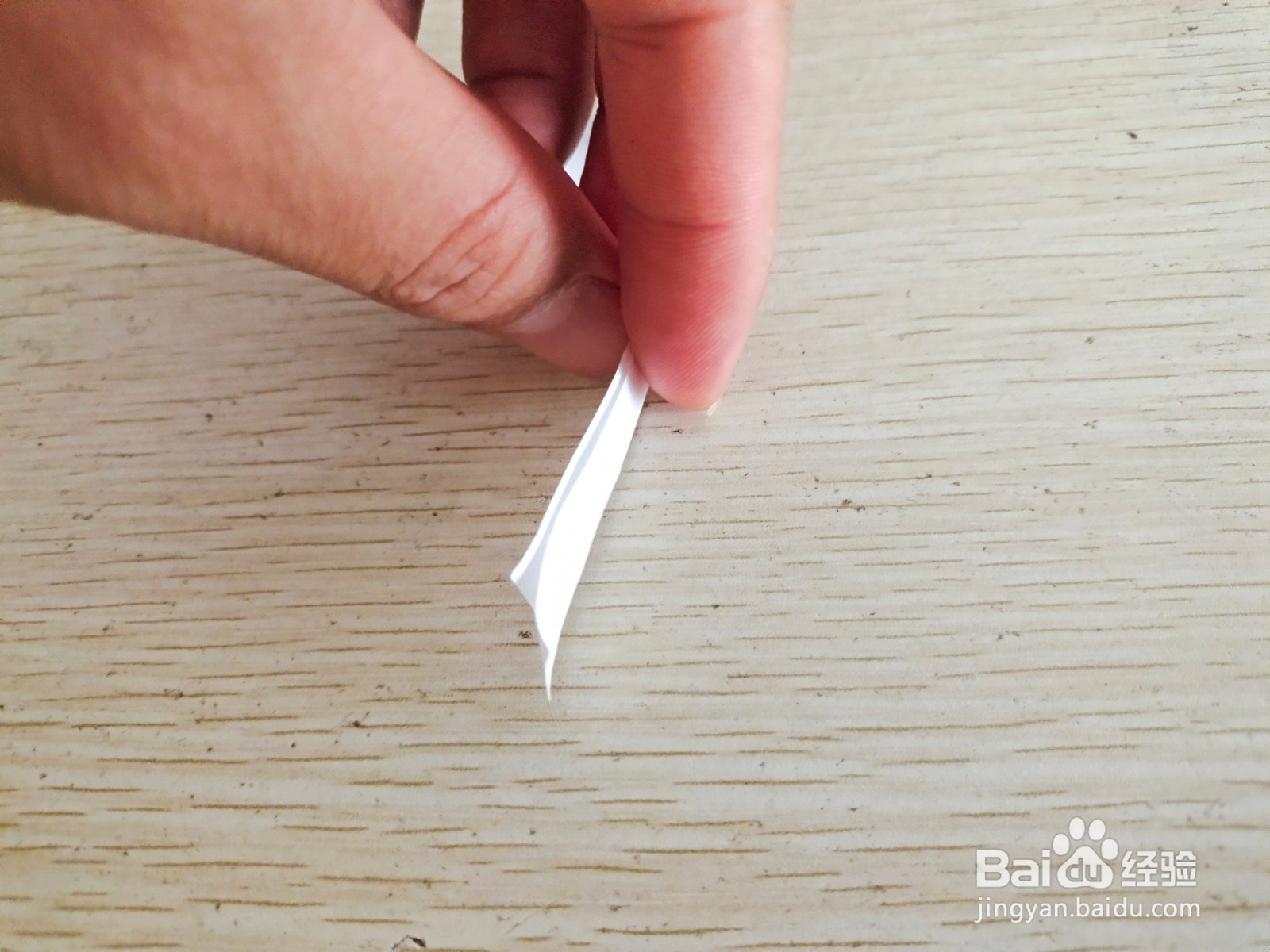 1、第一步,选择一个细长的纸条,先沿着长边的中心线的位置向内对折,折到两边几乎平行为止,具体操作如下图。