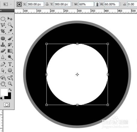 5、 Ctrl+J,前景色变为白色,Shift+Alt+Delete,变为白色, Ctrl+T,60%,回车确认缩小。命名为:“内白圈”