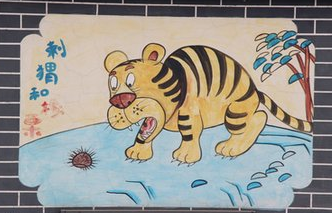 有一大虫,欲向野中觅食,见一刺猬仰卧,谓是肉脔,欲衔之。忽被猬卷着鼻,惊走,不知休息,直至山中,困乏,不觉昏睡,刺猬乃放鼻而走。大虫忽起欢喜,走至橡树下,低头见橡斗,乃侧身语云:“旦来遭见贤尊,愿郎君且避道!”
