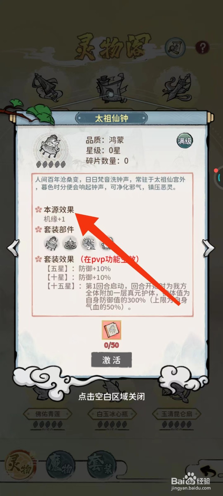 2、第二步:进入灵物界面,点击【太祖仙钟】图标